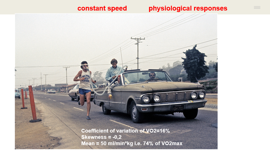 - Les mesures respiratoires en continu (analyseur portable) rendent ces constats écologiques (terrain & compétition) et permettent de s’affranchir des conclusions tirées de tests sur tapis roulant, qui, en outre modifie le pattern de la foulée.