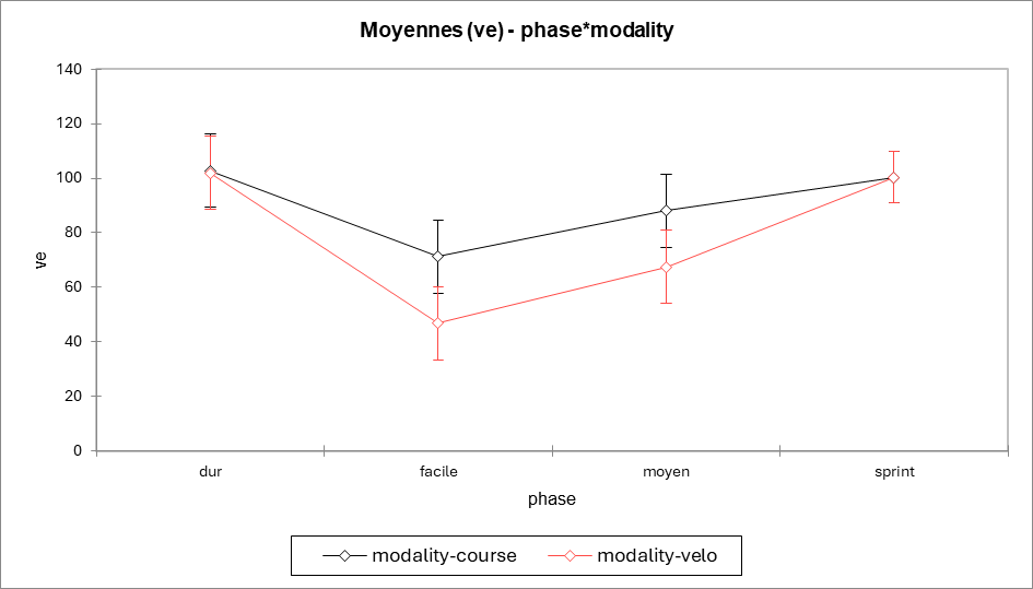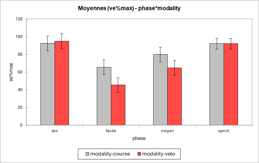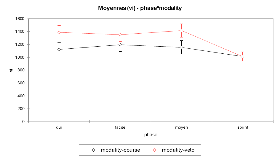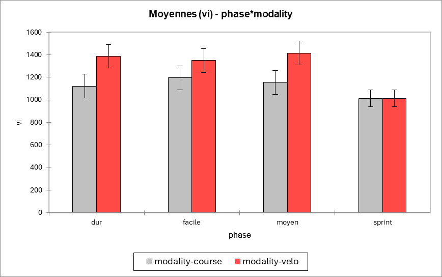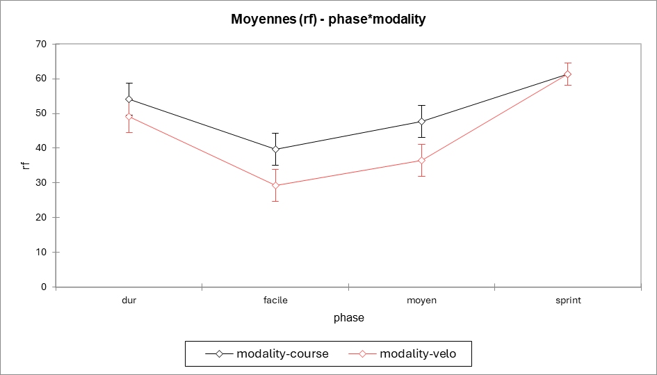 → Très intense : on augmente surtout la fréquence, pas la profondeur. - Pas de différence course ↔ vélo à phase identique (p = 0,53).