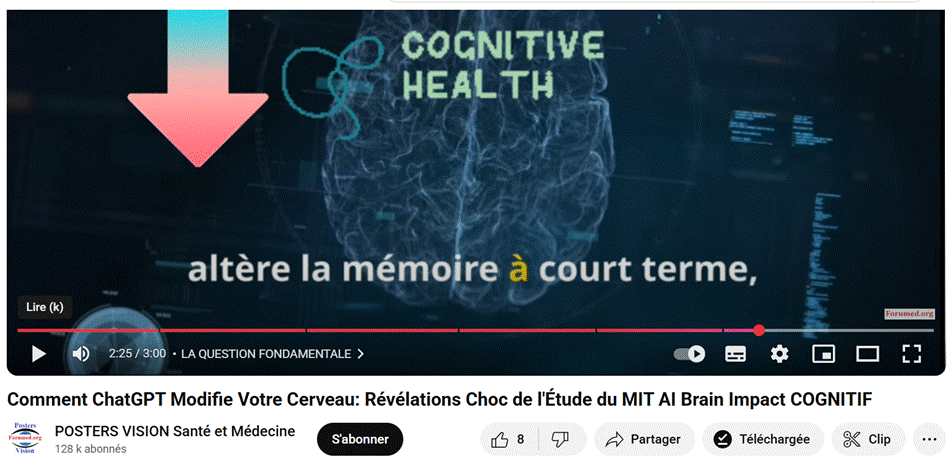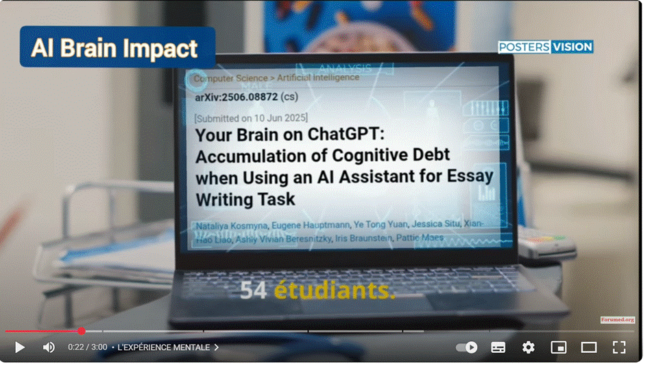 Sans parler de l’étude du MIT qui montre que les jeunes qui utilisent à 100% l’IA pour apprendre, ont moins 50% de leur activité cérébrale sollicitée avec en prome une incapacité à écrire un devoir seul.