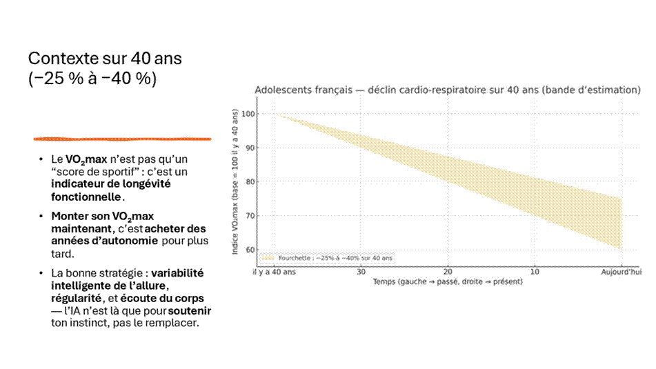 Objectif principalOptimisation de la prescription d’entraînement personnaliséeEstimation rapide de la capacité aérobie maximale